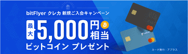 ビットフライヤーでは最大5000円相当のビットコインがもらえるクレカ新規入会キャンペーンを実施中です!
