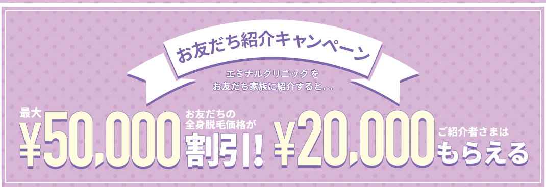 『エミナルクリニックお友達紹介で最大5万円割引キャンペーン』の内容