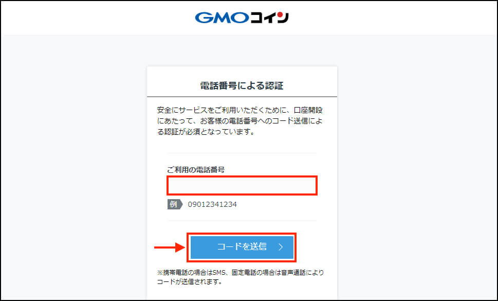 電話番号を確認して、[コードを送信する]を再度クリック。