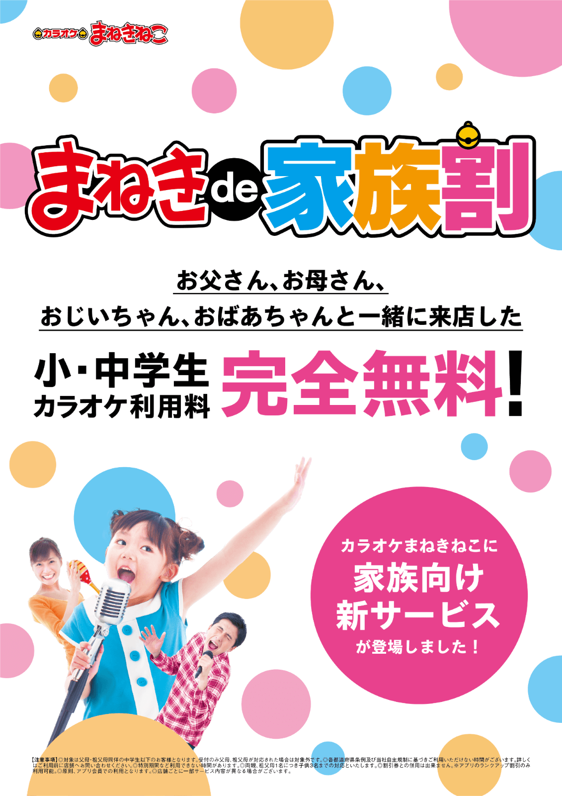 【カラオケまねきねこ】家族で行けばお得!「まねきde家族割」