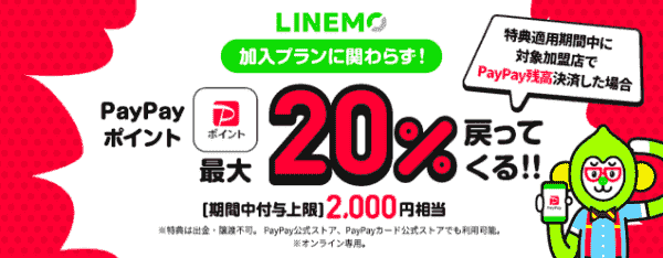 20%PayPayポイント還元!新規番号か他社からの乗り換えキャンペーン