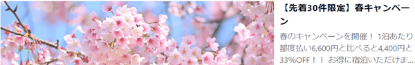 【お試しキャンペーン】先着最大9連泊62.5%オフ