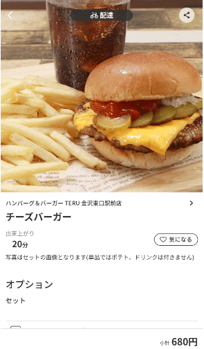 「チーズバーガー(680円)」など手頃に食べやすいメニューをぜひご注文ください↓