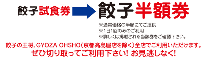 餃子の王将クーポン・キャンペーン【クーポン付き新聞広告・過去広告の餃子半額券】