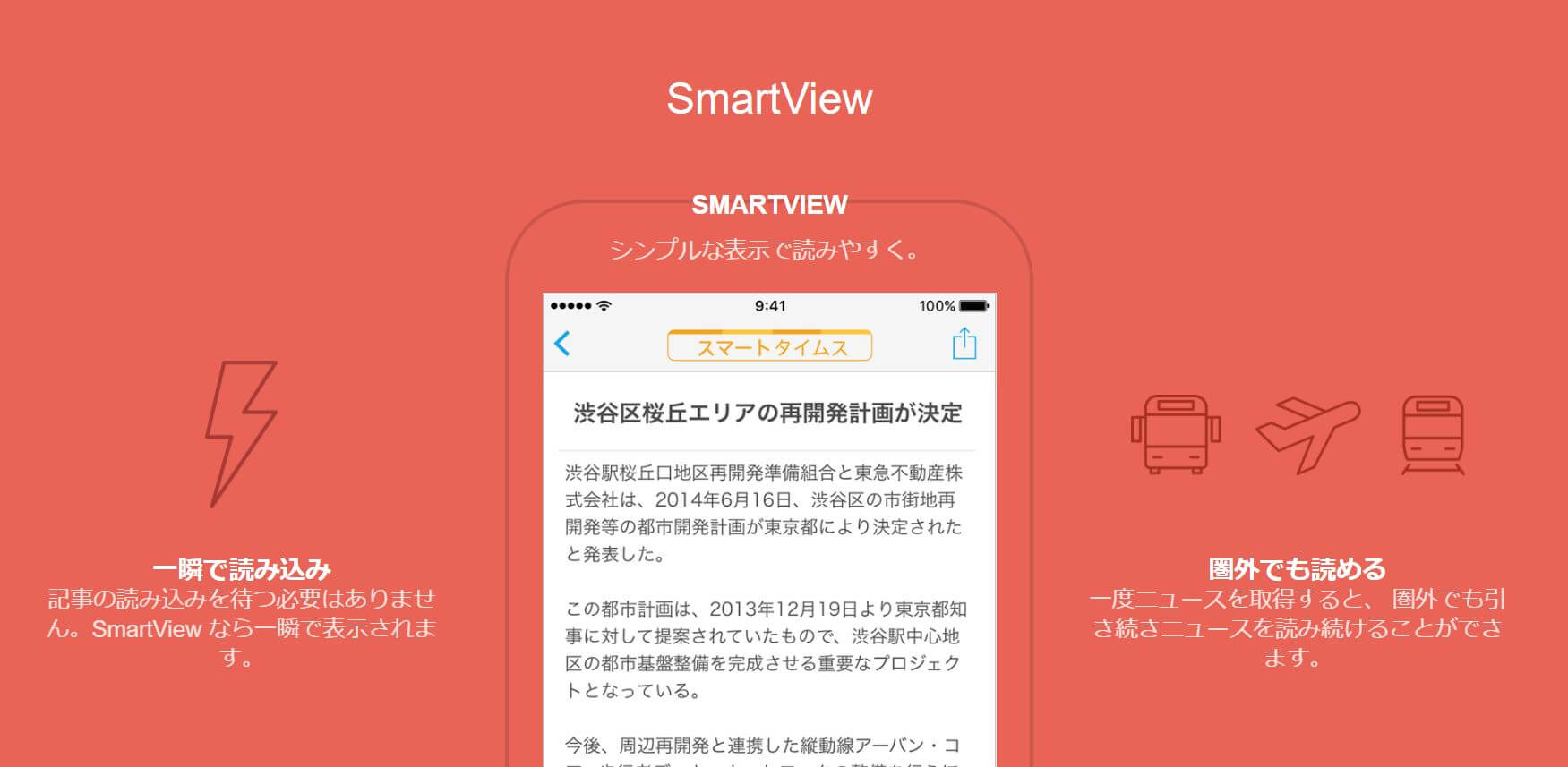 また、SmartViewでは記事を一瞬で読み込んでくれます。一度ニュースを取得すれば圏外で読むことも可能。シンプルな表示で見やすい点もポイントです。