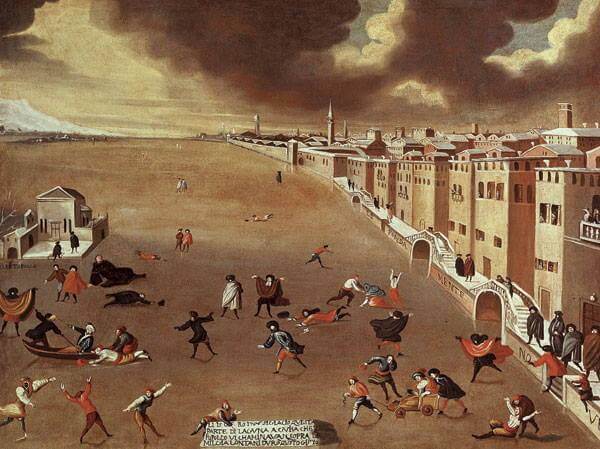 ガブリエレベラによって1709年に凍ったイタリア、ベニスのラグーンの一部