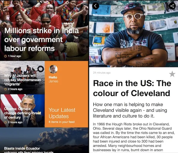 ほとんどのストーリーは、CNN、The New York Times、Forbes、Wiredなどのトップニュースソースから引用されています。さらにこのアプリには、ブラジル、インド、オーストラリア、中国など、25のローカル版があります。