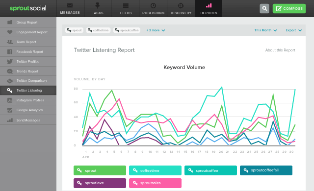 とはいえ、何千もの投稿を延々とチェックするのは骨が折れますよね。そんな方のために、我々Sproutは、わずかな時間で業界分析を行うツールを開発しています。