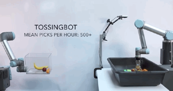彼らはこのロボットをTossingBotと名付けました。有効範囲が2倍になり、従来のロボットの最大2倍のピッキング速度を実現することが可能となりました。